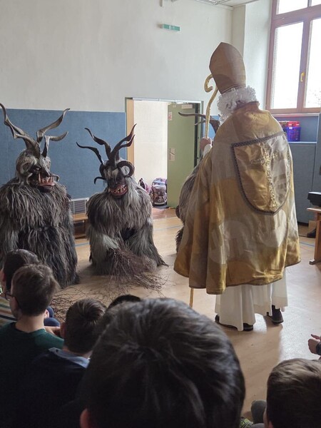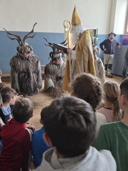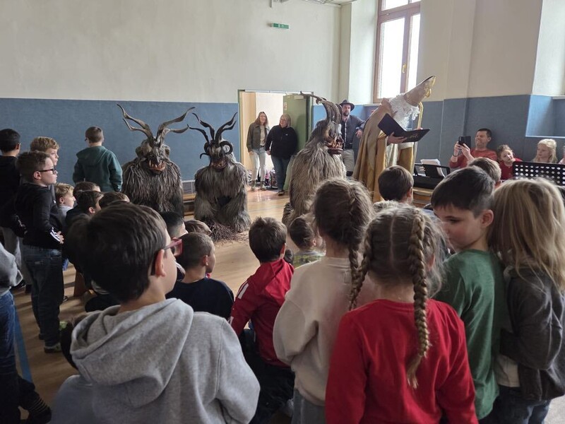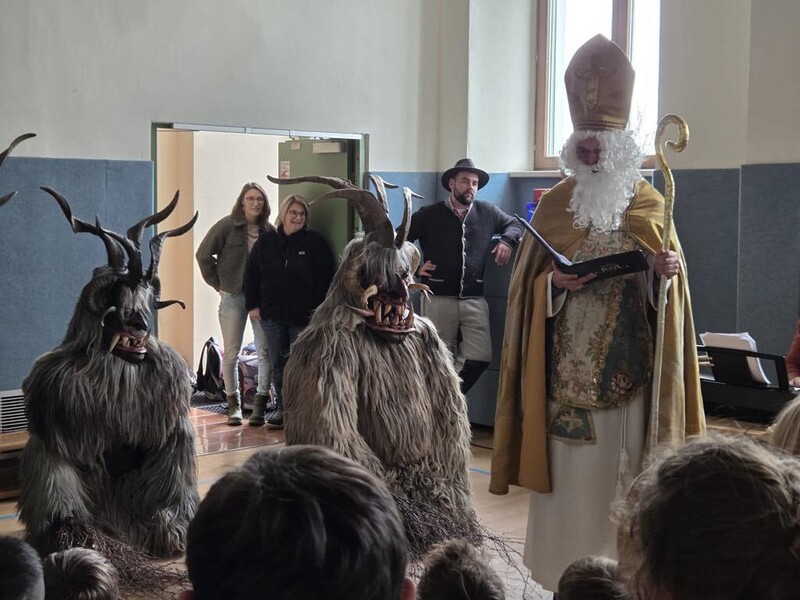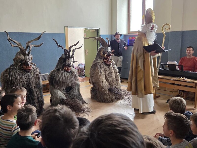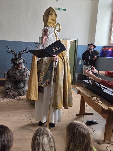 Der Besuch des Hl. Nikolaus und vor allem seiner Begleiter, der Krampusse und des "Waldmandls" war für alle sehr aufregend!