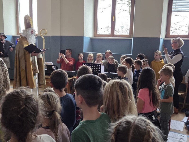 Das Gedicht der Erstklässler und die Lieder der Volksschüler begeisterten selbst den Nikolaus.